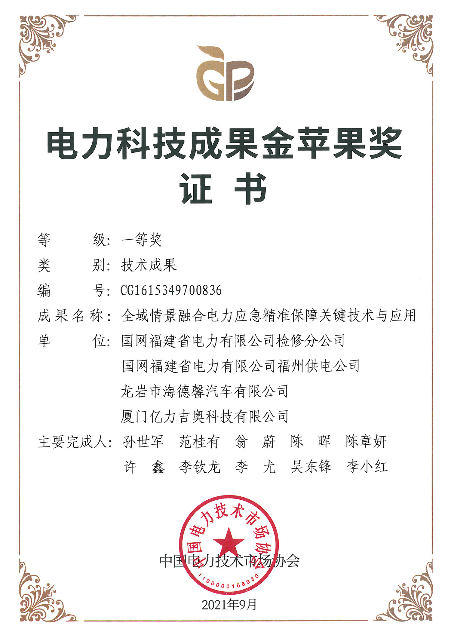 µçÁ¦¿Æ¼¼Ð§¹û½ðÆ»¹û½±Ò»µÈ½±