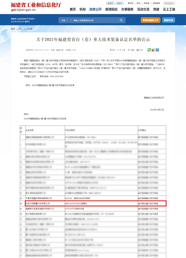 2021年12月27日,泰豪·welcometo欢迎光临必发集团公司研发的扩展式宿营车项目取得福建省首台(套)重大手艺装备认定。